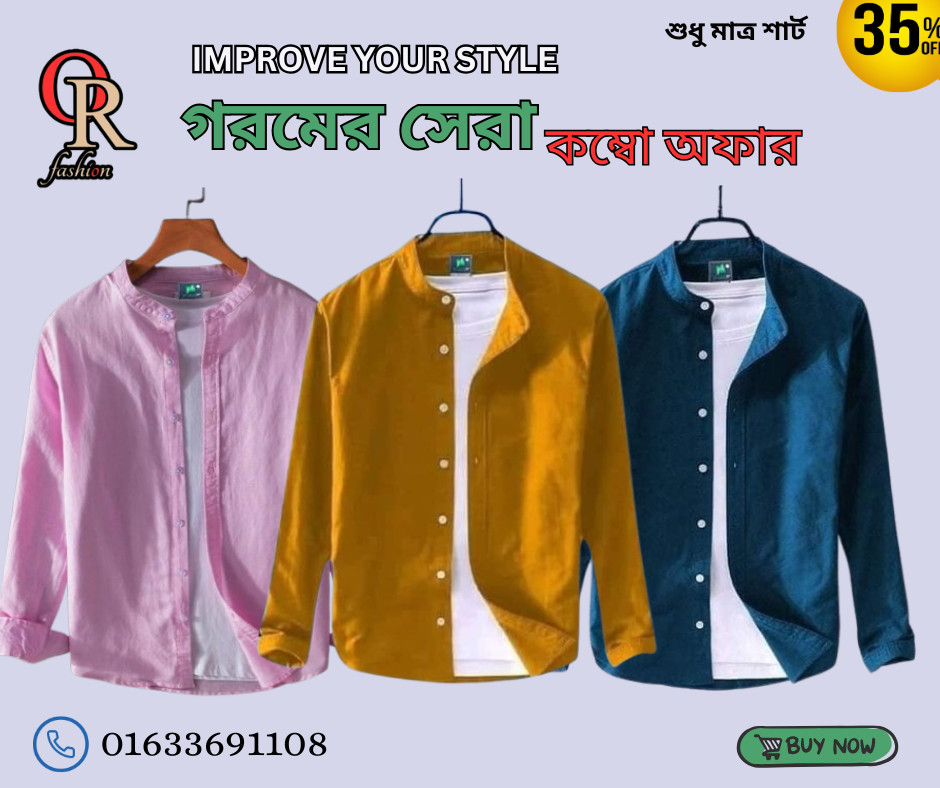 - Men’s Solid Color Shirt ( শুধুমাত্র শার্ট )